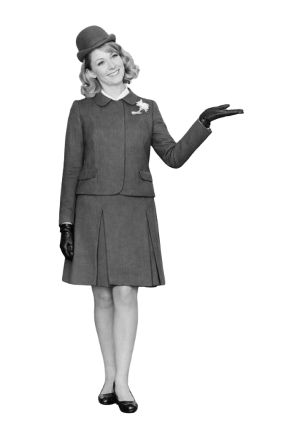 Nesta coleção, os uniformes das aeromoças contam histórias de liberdade, sofisticação e transformação cultural.