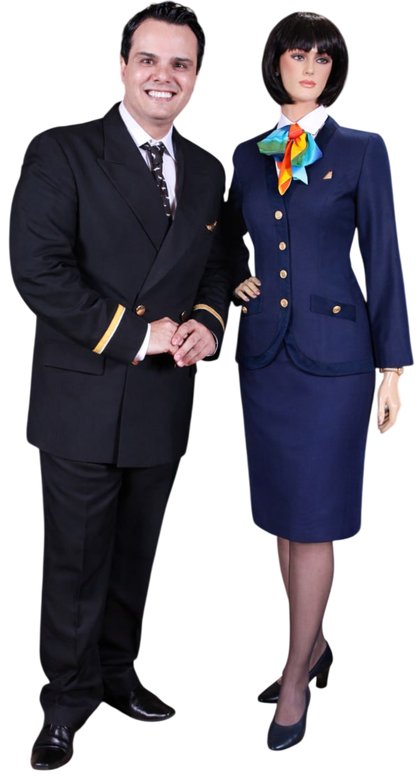 Uniformes de COMISSÁRIO, co-piloto e comandante utilizado pela empresa aérea TRANSBRASIL na década de 80.